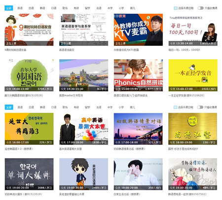 第六届语博会将在CCtalk、映客、花椒等20多个直播平台全程直播。CCtalk是沪江旗下的教育直播平台,从K12教育到职业发展教育,涵盖课程种类全面丰富,让你没有学不到的语言,没有学不到的课程,全天实时直播,外教口语加专业教学,支持在线聊天。并且,CCtalk设有学习中心模块的直播课堂,在线学习等多种功能,配备“我的题库”、“我的课表”、“我的教室”等学习工具,更好的为师生们提供实时互动的教学体验。