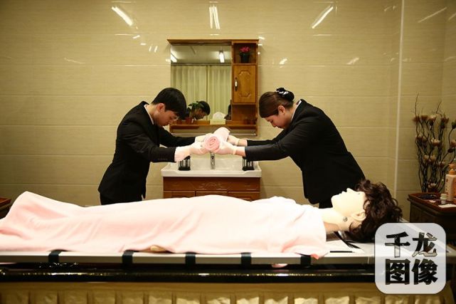 为逝者净面,减去手部和脚步的指甲,擦拭每一处身体,在面部涂上特制面膜,画上淡妆,还原活着时的面容……黄华栋和搭档两人在演示沐浴仪式时,精心细致而充满尊重的动作,让整个仪式肃穆而庄重。