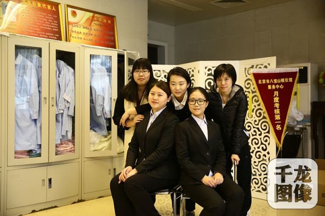 八宝山殡仪馆青清女子整容班5位80、90后入殓师合影。千龙网记者 许珠珠摄