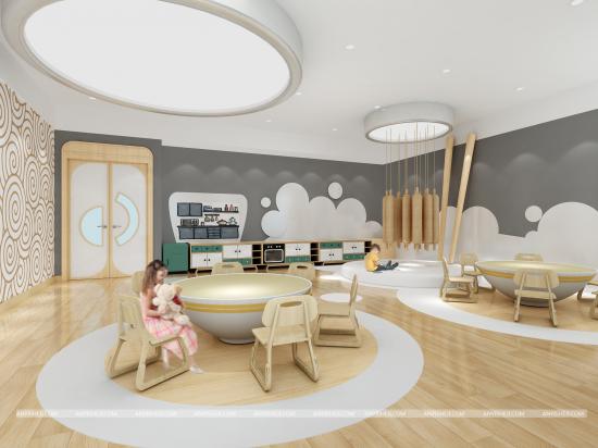青青藤十分注重审美教育和身心健康,室内装修设计摒弃华而不实的装修风格和过多的设计,采用简约的设计配合原木风格,呈现出清新自然、简约统一的暖色调,让孩子仿佛置身于大自然,在优美的环境中健康生活、快乐学习。