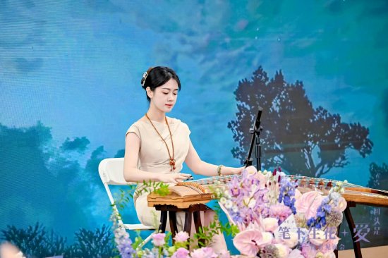 古筝演奏家现场演奏古筝曲目《蝴蝶与蓝》,乐声悠扬,婉转动人,与波儿的诗歌相互交融,使读者沉浸在优美而深邃的意境中,尽享听觉盛宴。