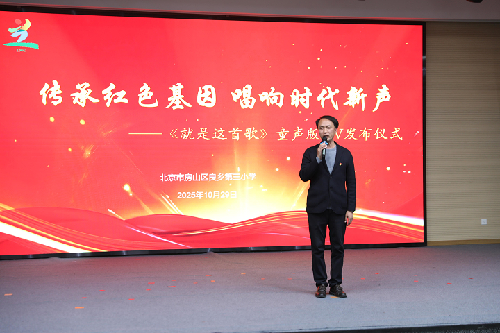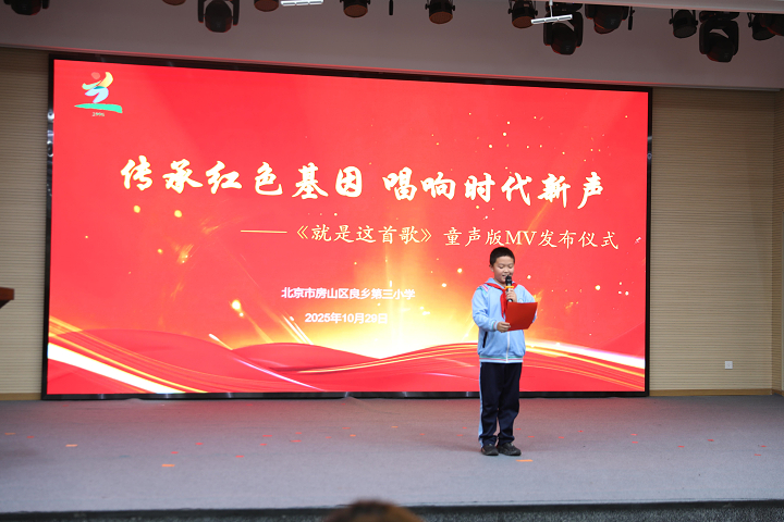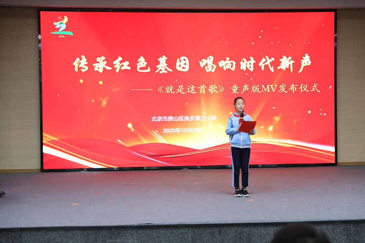 2025年10月29日,良乡第三小学在太平庄校区小蜜蜂剧场隆重举行“传承红色基因 唱响时代新声”——“蜜豆儿”合唱团《就是这首歌》童声版MV发布仪式。学校领导、师生、家长代表以及特邀嘉宾齐聚一堂,共同见证了这一凝聚红色精神与新时代少年风采的成果发布。