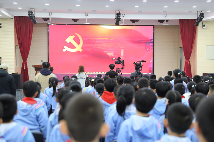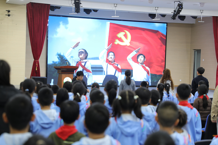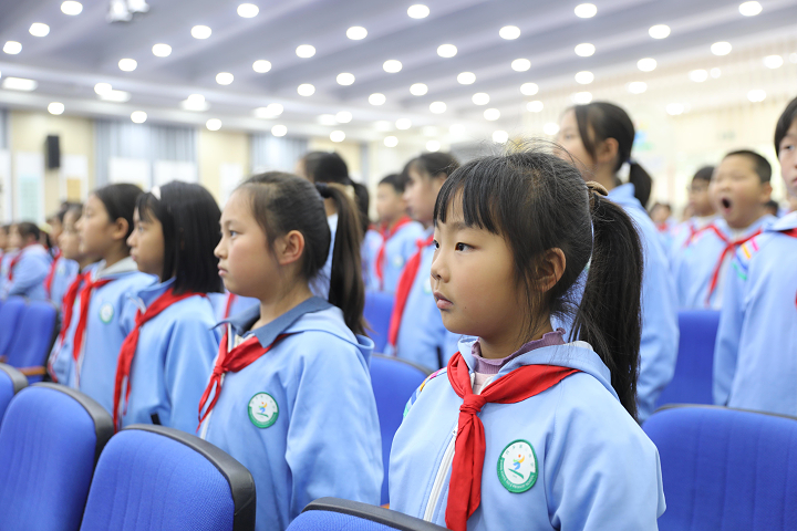 MV发布后,学校少先队员代表朱语泽宣读了《“传承红色精神 争做时代好少年”倡议书》,发出了新时代少先队员的强音,号召全体同学将爱国情、强国志转化为日常行动。