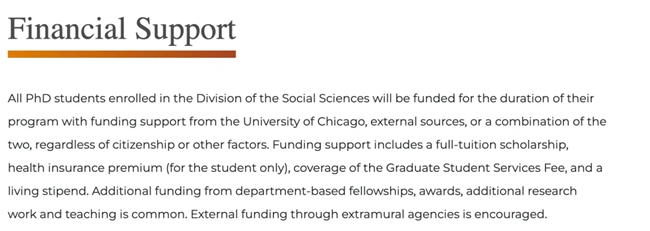 针对致力于冲刺全奖博士项目的学子,先理知学REAL PhD在深入评估其目标院校与学术发展规划的基础上,配置由2位QS百强博导与5位资深申博顾问组成的七人“智慧囊”团队,以“1+1+5对1”的专属服务模式全程跟进。依托专业博导资源和中英双总部协同架构,先理知学REAL PhD能有效打破跨国信息壁垒,助力学生精准把握目标院校的全奖政策动态与招生偏好,实现知己知彼,并制定科学、针对性的申请策略。以美国芝加哥大学经济学全奖博士项目为例,其全奖资助涵盖全额学费、年度生活津贴(2025-2026学年为$46,350,按月发放)、全面健康保险及研究生服务费全额豁免。优质的学术资源与卓越的学术声誉,吸引全球优秀学子竞相申报。