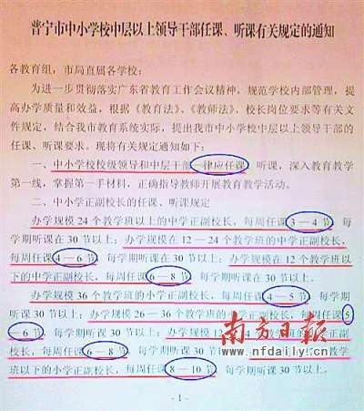 普宁市教育局表示,通过调查,发现泥沟中学的领导干部确实存在“逃课”现象。“这个通知只是普宁市下发的,上级部门没有要求,我们的初衷是让校领导干部通过实地教学,更好地处理行政事务。而校长的主要任务是搞好行政工作,个别学校的领导干部由于行政事务繁忙,未能平衡好教学与行政的工作,我们也责令其整改,执行通知的要求,至于漏下的课,无法再补。”记者 闫昆仑 实习生 曾栩 来源:南方日报