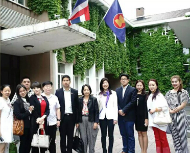 同样都有一个“中国梦”和一个“世界梦”的泰国泰国皇室罗成先生,泰国教育部部长办主任chonticha 女士、与《七彩星球》制片人兼主持人青青姐姐,七彩星球国际综艺盛典相约泰国制片主任刘晓玲女士,北京启智艺术团团长杨海涯进行了友好融洽的会晤。