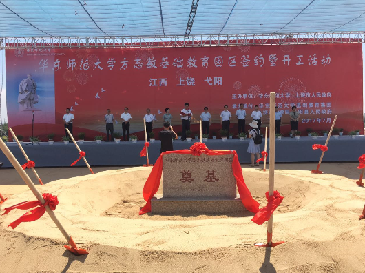 7月13日,华东师范大学方志敏基础教育园区在方志敏故乡弋阳县正式签约并开工建设。华东师范大学、省教育厅、上饶市、弋阳县领导出席仪式。这标志着2016年7月华东师大与上饶市人民政府签定的《战略合作框架协议》和《教育领域合作协议》在弋阳落地。