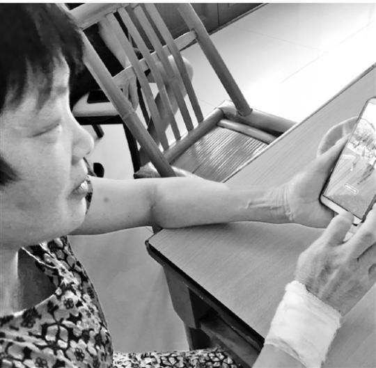 徐金妹手腕上缠着纱布,这是因为前些日子刚刚开完刀。她笑笑说,“没事,就是个小手术,以前的那些个事都经历过了,这不算啥。”