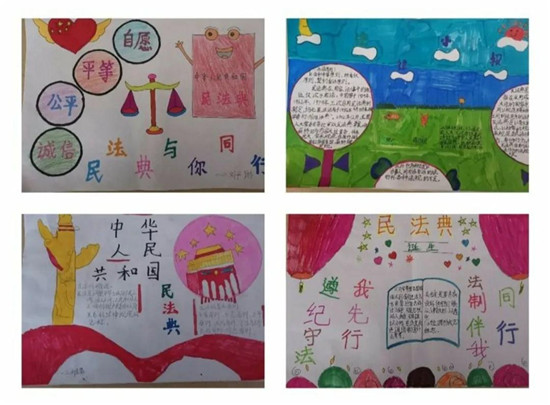 举办了学习宣传《民法典》绘画和手抄报活动,各年级举办了一期学习《民法典》主题班会。道德与法治教师结合学科特点,为学生讲授了《民法典》专题知识课程,同学们认真聆听,对《民法典》的诞生有了更深层次的领悟。