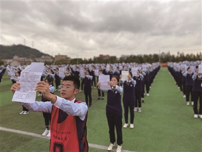 11月28日一早,温八高的操场上已步声雷动,两千余名学生用激情诵读、武术操、大摆臂变阵等文化跑操方式喜迎各方来宾。