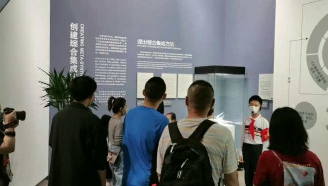 ▲长假里的钱学森图书馆,中小学生讲解员正在进行讲解