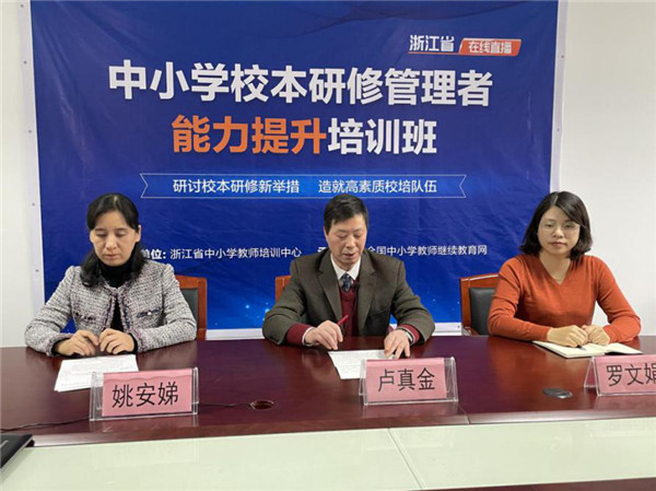 2020年11月25日-27日,由浙江省中小学教师培训中心主办,全国中小学教师继续教育网承办的“浙江省中小学校本研修管理者能力提升培训班”通过远程直播的形式顺利开展。此次培训会议旨在研讨校本研修新举措,全面造就高素质校培队伍,对标浙江教培新精神。浙江省师干训中心常务副主任卢真金、副主任姚安娣、全国中小学教师继续教育网华东区负责人罗文娟出席了云端会议开班仪式,浙江省省、市、区县各级校本研修管理者以及来自全国各地的权威专家也“超时空”集合在浙江。