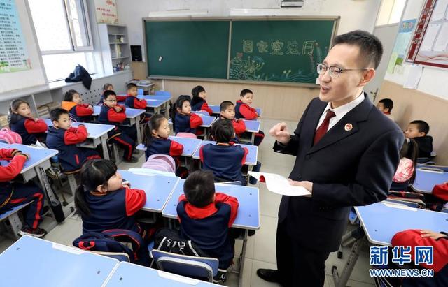 12月3日,在石家庄市建胜路小学,石家庄市桥西区人民检察院检察官李雪平为学生们讲解宪法知识。 在第七个“国家宪法日”即将来临之际,各地学校开展宪法知识宣传活动,通过宪法诵读、宪法知识小课堂等形式,对学生进行宪法教育。